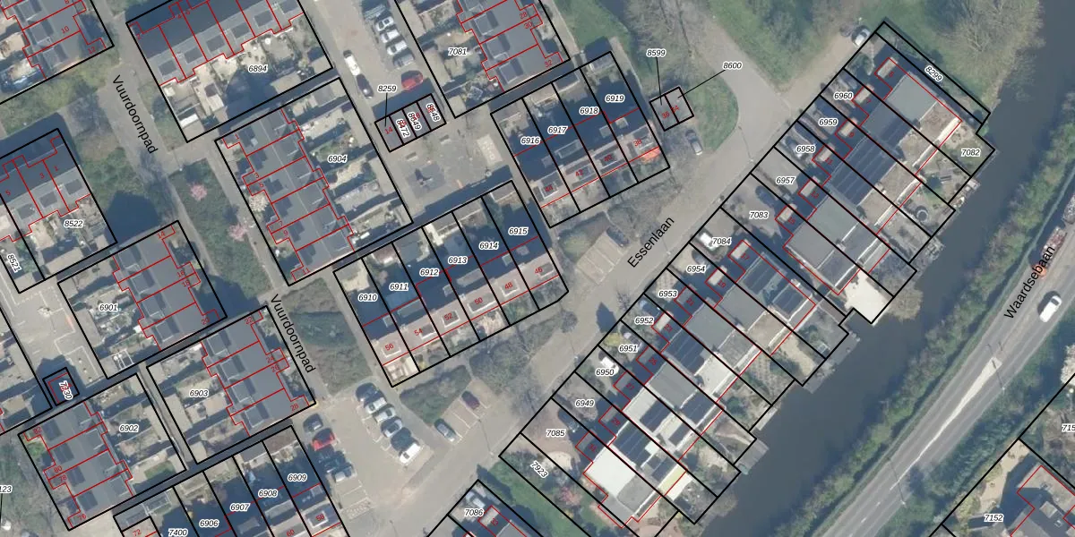 Gebruik de zoekbalk of klik op een perceel voor informatie over de adressen binnen dit perceel.