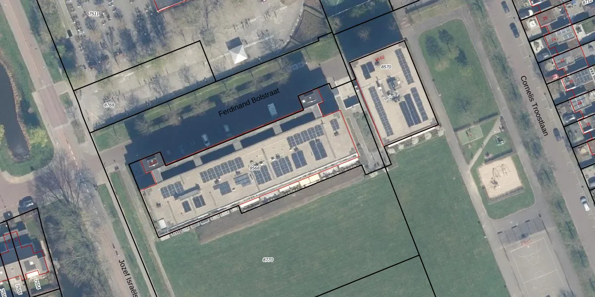 Het perceel waarop Ferdinand Bolstraat 18 staat heeft een oppervlakte van 2030 m². Dit is een zeer groot perceel. De perceeloppervlakte wordt geregistreerd door het Kadaster. Gedetailleerde informatie over de maten van dit perceel kunt u vinden in het rapport Kadastrale kaart met maatvoering van Ferdinand Bolstraat 18.