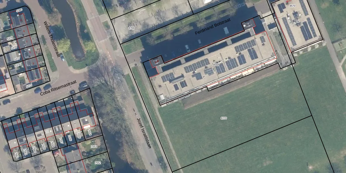 Het perceel waarop Ferdinand Bolstraat 22 staat heeft een oppervlakte van 2030 m². Dit is een zeer groot perceel. De perceeloppervlakte wordt geregistreerd door het Kadaster. Gedetailleerde informatie over de maten van dit perceel kunt u vinden in het rapport Kadastrale kaart met maatvoering van Ferdinand Bolstraat 22.