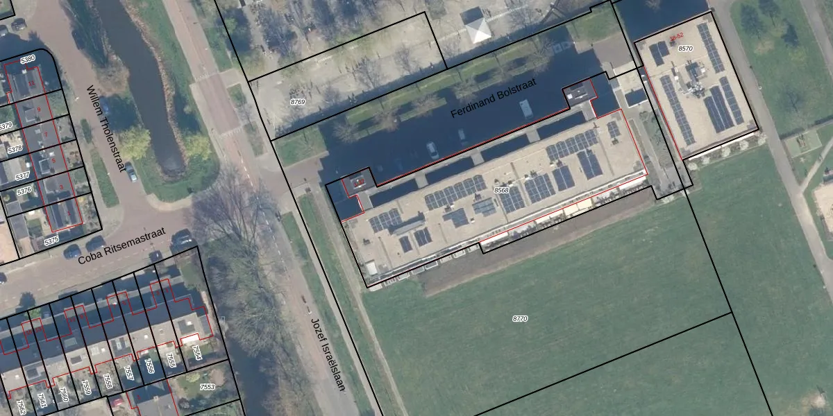Het perceel waarop Ferdinand Bolstraat 3 staat heeft een oppervlakte van 2030 m². Dit is een zeer groot perceel. De perceeloppervlakte wordt geregistreerd door het Kadaster. Gedetailleerde informatie over de maten van dit perceel kunt u vinden in het rapport Kadastrale kaart met maatvoering van Ferdinand Bolstraat 3.