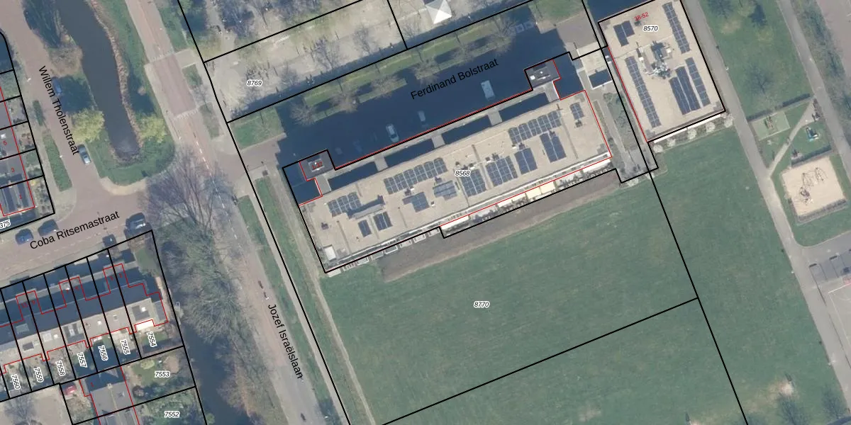 Het perceel waarop Ferdinand Bolstraat 32 staat heeft een oppervlakte van 2030 m². Dit is een zeer groot perceel. De perceeloppervlakte wordt geregistreerd door het Kadaster. Gedetailleerde informatie over de maten van dit perceel kunt u vinden in het rapport Kadastrale kaart met maatvoering van Ferdinand Bolstraat 32.