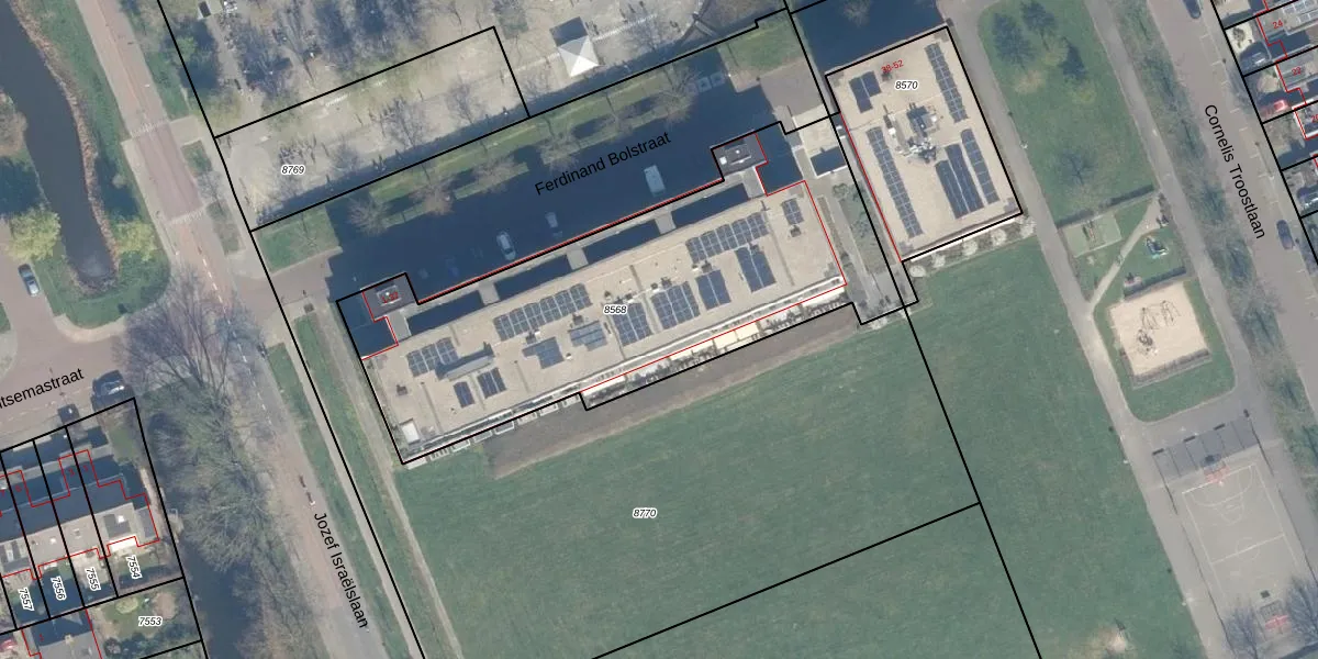 Het perceel waarop Ferdinand Bolstraat 34 staat heeft een oppervlakte van 2030 m². Dit is een zeer groot perceel. De perceeloppervlakte wordt geregistreerd door het Kadaster. Gedetailleerde informatie over de maten van dit perceel kunt u vinden in het rapport Kadastrale kaart met maatvoering van Ferdinand Bolstraat 34.