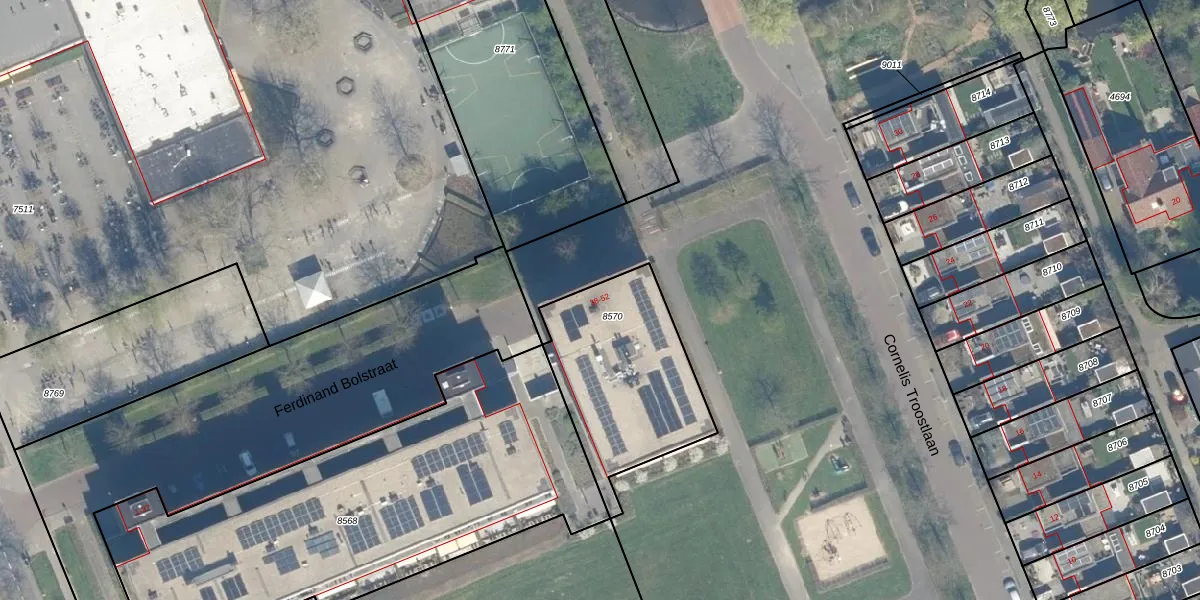 Het perceel waarop Ferdinand Bolstraat 38 staat heeft een oppervlakte van 666 m². Dit is een groot perceel. De perceeloppervlakte wordt geregistreerd door het Kadaster. Gedetailleerde informatie over de maten van dit perceel kunt u vinden in het rapport Kadastrale kaart met maatvoering van Ferdinand Bolstraat 38.