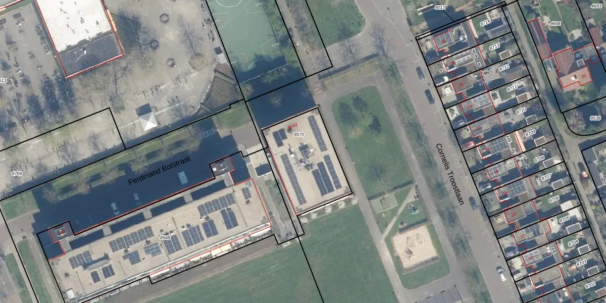 Het perceel waarop Ferdinand Bolstraat 47 staat heeft een oppervlakte van 666 m². Dit is een groot perceel. De perceeloppervlakte wordt geregistreerd door het Kadaster. Gedetailleerde informatie over de maten van dit perceel kunt u vinden in het rapport Kadastrale kaart met maatvoering van Ferdinand Bolstraat 47.