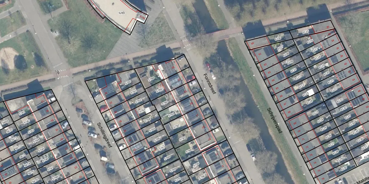Gebruik de zoekbalk of klik op een perceel voor informatie over de adressen binnen dit perceel.