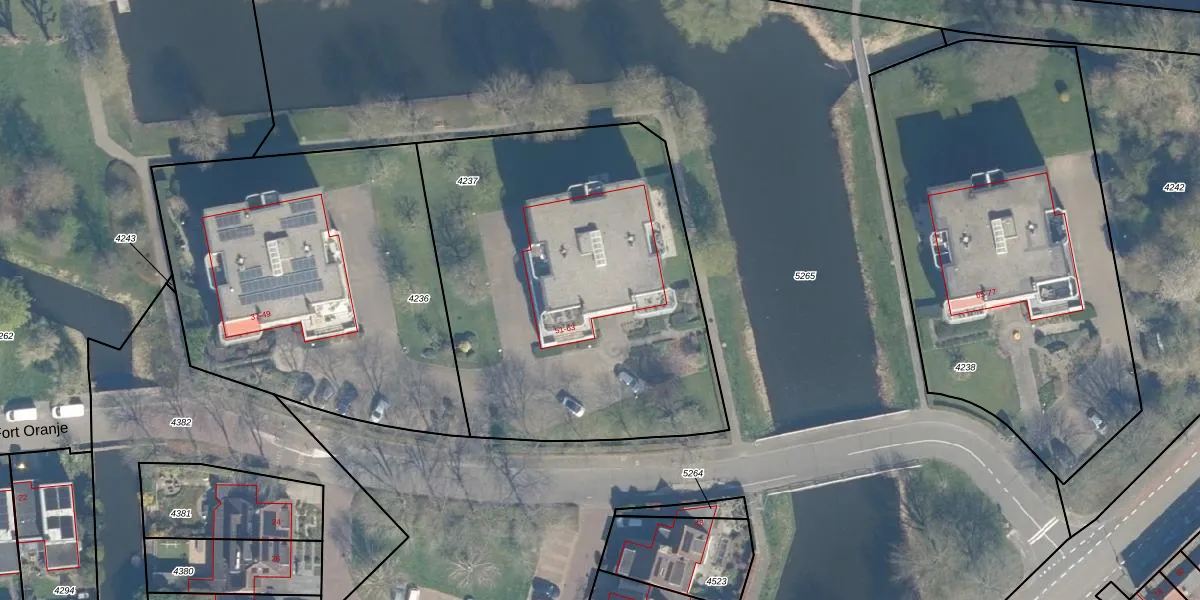 Het perceel waarop Fort Oranje 59 staat heeft een oppervlakte van 2160 m². Dit is een zeer groot perceel. De perceeloppervlakte wordt geregistreerd door het Kadaster. Gedetailleerde informatie over de maten van dit perceel kunt u vinden in het rapport Kadastrale kaart met maatvoering van Fort Oranje 59.