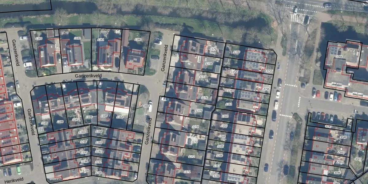 Ganzerikveld 107 is gelegen op kadastraal perceel WDN01D1176. Deze kadastrale aanduiding is uniek en wordt gebruikt door het Kadaster om eigendomsrechten en andere zakelijke rechten vast te leggen. Het perceel maakt onderdeel uit van de kadastrale gemeente Woerden.