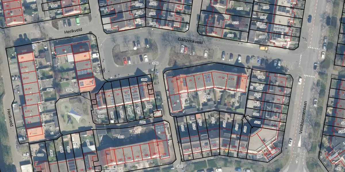 Ganzerikveld 23 is gelegen op kadastraal perceel WDN01D1043. Deze kadastrale aanduiding is uniek en wordt gebruikt door het Kadaster om eigendomsrechten en andere zakelijke rechten vast te leggen. Het perceel maakt onderdeel uit van de kadastrale gemeente Woerden.
