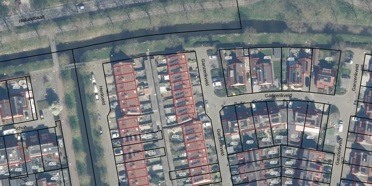 Ganzerikveld 67 is gelegen op kadastraal perceel WDN01D3641. Deze kadastrale aanduiding is uniek en wordt gebruikt door het Kadaster om eigendomsrechten en andere zakelijke rechten vast te leggen. Het perceel maakt onderdeel uit van de kadastrale gemeente Woerden.