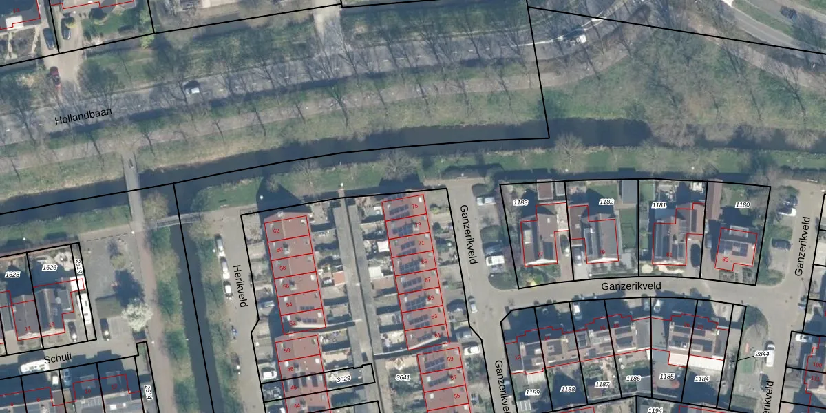 Ganzerikveld 75 is gelegen op kadastraal perceel WDN01D3641. Deze kadastrale aanduiding is uniek en wordt gebruikt door het Kadaster om eigendomsrechten en andere zakelijke rechten vast te leggen. Het perceel maakt onderdeel uit van de kadastrale gemeente Woerden.