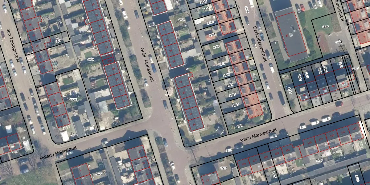 Gebr. Marisstraat 20 is gelegen op kadastraal perceel WDN01B8859. Deze kadastrale aanduiding is uniek en wordt gebruikt door het Kadaster om eigendomsrechten en andere zakelijke rechten vast te leggen. Het perceel maakt onderdeel uit van de kadastrale gemeente Woerden.