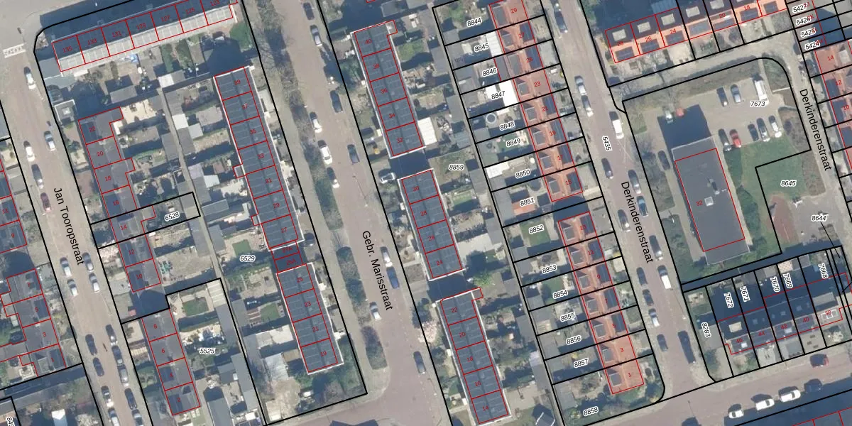 Het perceel waarop Gebr. Marisstraat 28 staat heeft een oppervlakte van 3737 m². Dit is een zeer groot perceel. De perceeloppervlakte wordt geregistreerd door het Kadaster. Gedetailleerde informatie over de maten van dit perceel kunt u vinden in het rapport Kadastrale kaart met maatvoering van Gebr. Marisstraat 28.