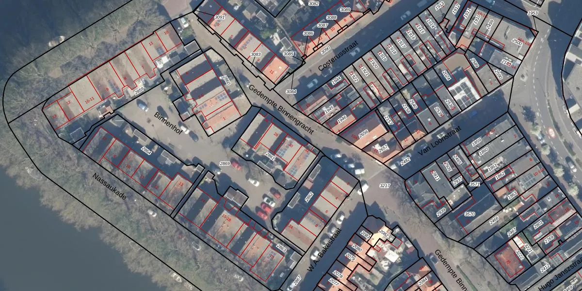 Het perceel waarop Gedempte Binnengracht 30 staat heeft een oppervlakte van 434 m². Dit is een groot perceel. De perceeloppervlakte wordt geregistreerd door het Kadaster. Gedetailleerde informatie over de maten van dit perceel kunt u vinden in het rapport Kadastrale kaart met maatvoering van Gedempte Binnengracht 30.