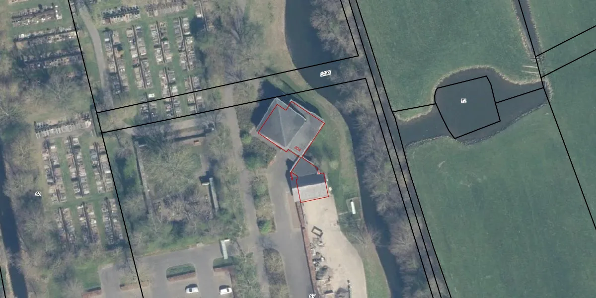 Het adres ligt op het perceel WDN01-A-67, dat zich in de kadastrale gemeente Woerden bevindt. De oppervlakte van het perceel is 1,4 ha. Dat is groter dan gemiddeld in Woerden, waar de gemiddelde perceeloppervlakte op 1326,34 m² ligt. De grootste perceeloppervlakte in de kadastrale gemeente is 55,0 ha. De kleinste oppervlakte bedraagt 0 m². Er zijn geen andere adressen aanwezig op het perceel. De laatste wijziging in het de Basisregistratie Kadaster (BRK) was op 06-01-1999.