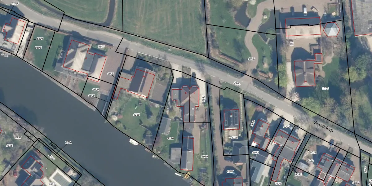 Het perceel waarop Geestdorp 5 staat heeft een oppervlakte van 596 m². Dit is een groot perceel. De perceeloppervlakte wordt geregistreerd door het Kadaster. Gedetailleerde informatie over de maten van dit perceel kunt u vinden in het rapport Kadastrale kaart met maatvoering van Geestdorp 5.