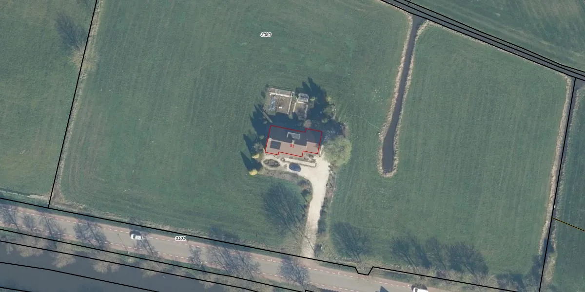 Het perceel waarop Geestdorp 51 staat heeft een oppervlakte van 1,6 ha. Dit is een zeer groot perceel. De perceeloppervlakte wordt geregistreerd door het Kadaster. Gedetailleerde informatie over de maten van dit perceel kunt u vinden in het rapport Kadastrale kaart met maatvoering van Geestdorp 51.