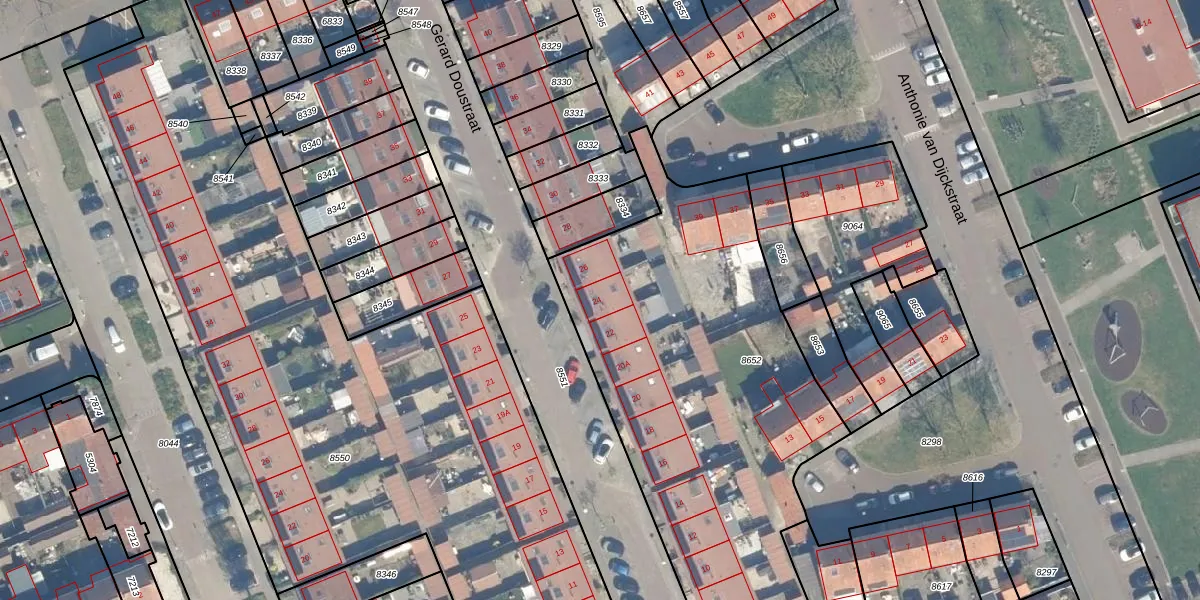 Gerard Doustraat 24 is gelegen op kadastraal perceel WDN01B8652. Deze kadastrale aanduiding is uniek en wordt gebruikt door het Kadaster om eigendomsrechten en andere zakelijke rechten vast te leggen. Het perceel maakt onderdeel uit van de kadastrale gemeente Woerden.