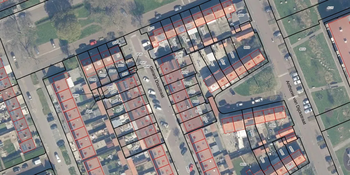 Gebruik de zoekbalk of klik op een perceel voor informatie over de adressen binnen dit perceel.