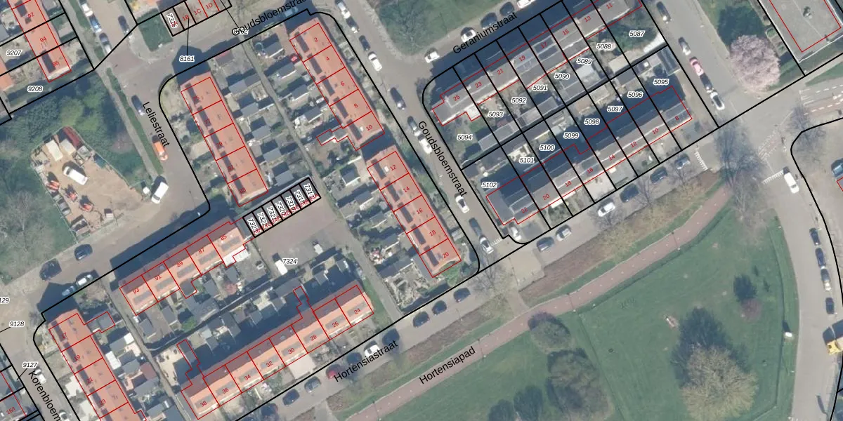 Het perceel waarop Goudsbloemstraat 16 staat heeft een oppervlakte van 5889 m². Dit is een zeer groot perceel. De perceeloppervlakte wordt geregistreerd door het Kadaster. Gedetailleerde informatie over de maten van dit perceel kunt u vinden in het rapport Kadastrale kaart met maatvoering van Goudsbloemstraat 16.