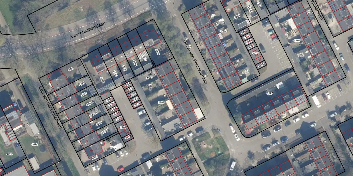 Groen van Prinstererlaan 6 is gelegen op kadastraal perceel WDN01A3303. Deze kadastrale aanduiding is uniek en wordt gebruikt door het Kadaster om eigendomsrechten en andere zakelijke rechten vast te leggen. Het perceel maakt onderdeel uit van de kadastrale gemeente Woerden.