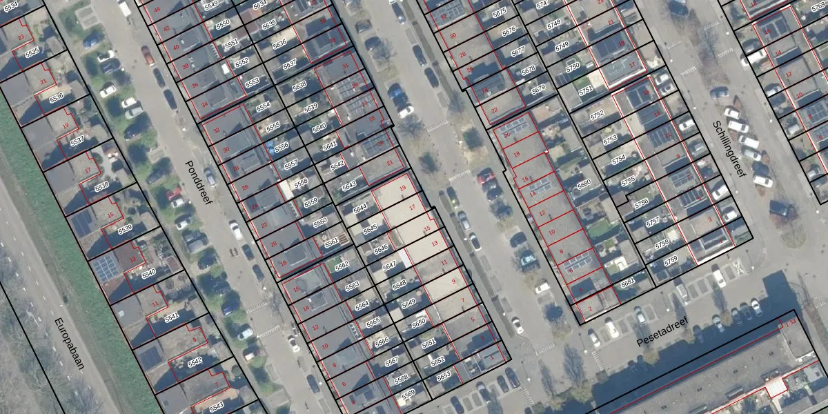 Gebruik de zoekbalk of klik op een perceel voor informatie over de adressen binnen dit perceel.