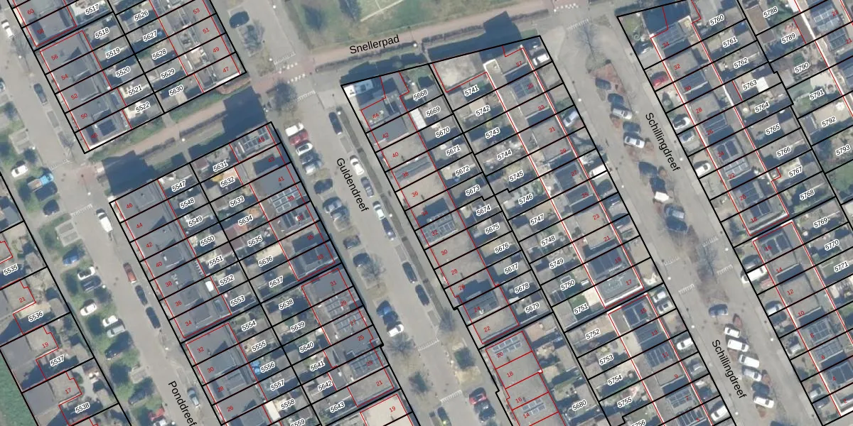 Het perceel waarop Guldendreef 34 staat heeft een oppervlakte van 108 m². Dit is een middelgroot perceel. De perceeloppervlakte wordt geregistreerd door het Kadaster. Gedetailleerde informatie over de maten van dit perceel kunt u vinden in het rapport Kadastrale kaart met maatvoering van Guldendreef 34.