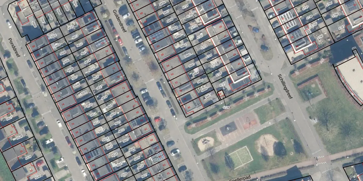 Gebruik de zoekbalk of klik op een perceel voor informatie over de adressen binnen dit perceel.