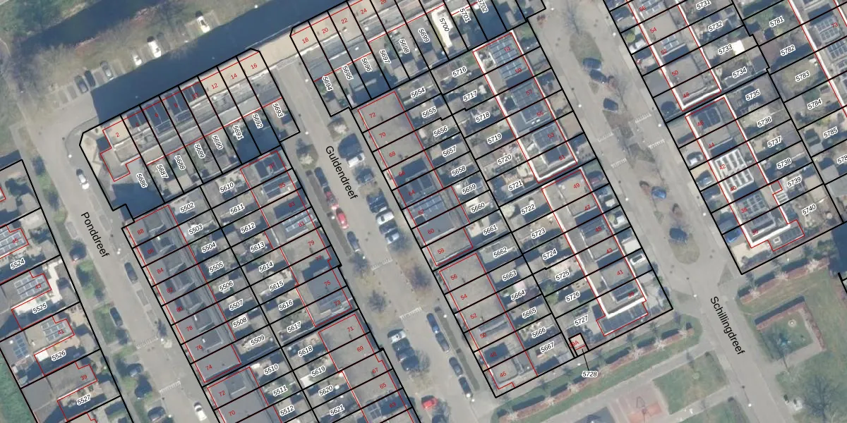 Het perceel waarop Guldendreef 62 staat heeft een oppervlakte van 106 m². Dit is een middelgroot perceel. De perceeloppervlakte wordt geregistreerd door het Kadaster. Gedetailleerde informatie over de maten van dit perceel kunt u vinden in het rapport Kadastrale kaart met maatvoering van Guldendreef 62.