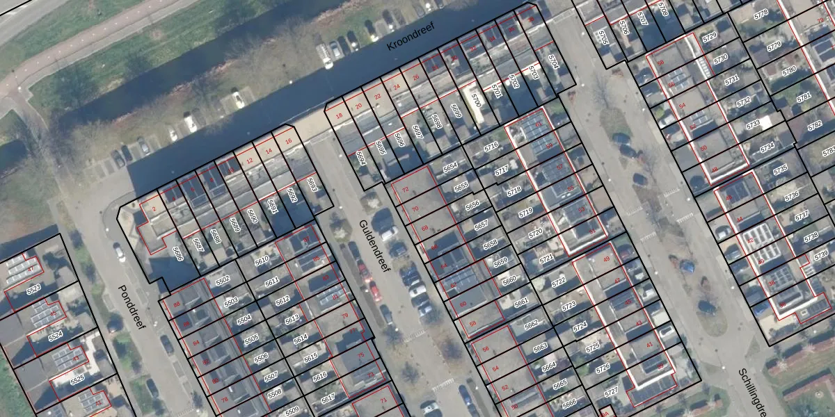 Guldendreef 70 is gelegen op kadastraal perceel WDN01A5655. Deze kadastrale aanduiding is uniek en wordt gebruikt door het Kadaster om eigendomsrechten en andere zakelijke rechten vast te leggen. Het perceel maakt onderdeel uit van de kadastrale gemeente Woerden.