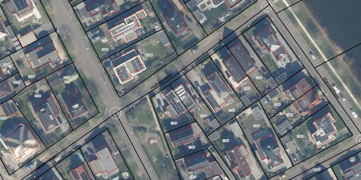 Hallsteinlaan 7 is gelegen op kadastraal perceel WDN01A7150. Deze kadastrale aanduiding is uniek en wordt gebruikt door het Kadaster om eigendomsrechten en andere zakelijke rechten vast te leggen. Het perceel maakt onderdeel uit van de kadastrale gemeente Woerden.