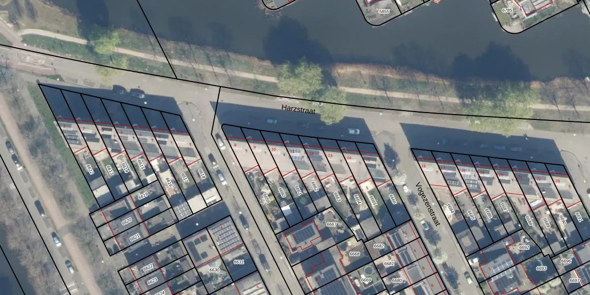Harzstraat 11 is gelegen op kadastraal perceel WDN01A6662. Deze kadastrale aanduiding is uniek en wordt gebruikt door het Kadaster om eigendomsrechten en andere zakelijke rechten vast te leggen. Het perceel maakt onderdeel uit van de kadastrale gemeente Woerden.