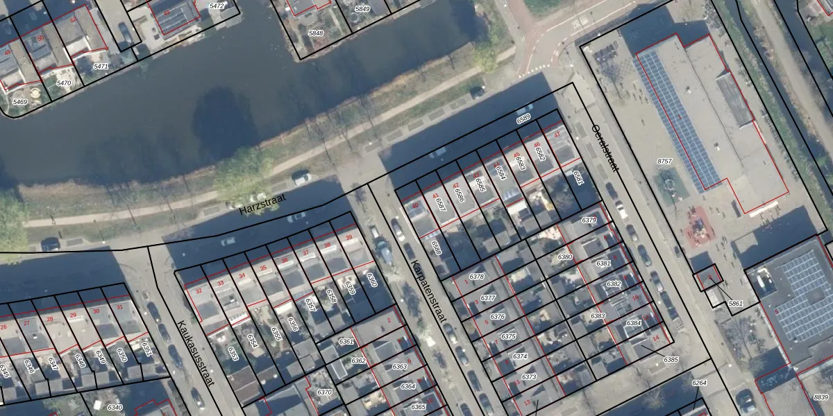 Gebruik de zoekbalk of klik op een perceel voor informatie over de adressen binnen dit perceel.