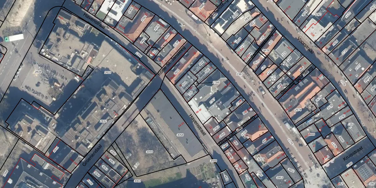 Het perceel waarop Havenstraat 9 staat heeft een oppervlakte van 40 m². Dit is een klein perceel. De perceeloppervlakte wordt geregistreerd door het Kadaster. Gedetailleerde informatie over de maten van dit perceel kunt u vinden in het rapport Kadastrale kaart met maatvoering van Havenstraat 9.