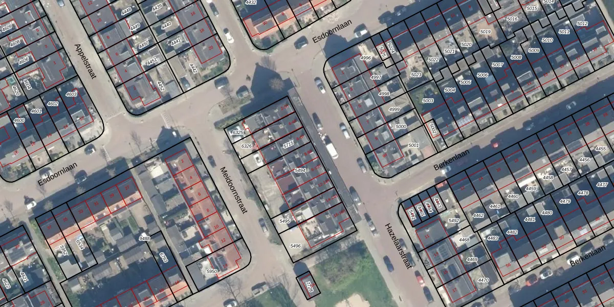 Hazelaarstraat 8 is gelegen op kadastraal perceel WDN01B5494. Deze kadastrale aanduiding is uniek en wordt gebruikt door het Kadaster om eigendomsrechten en andere zakelijke rechten vast te leggen. Het perceel maakt onderdeel uit van de kadastrale gemeente Woerden.