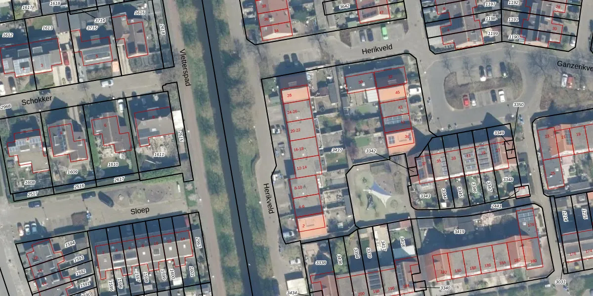 Herikveld 18 is gelegen op kadastraal perceel WDN01D3437. Deze kadastrale aanduiding is uniek en wordt gebruikt door het Kadaster om eigendomsrechten en andere zakelijke rechten vast te leggen. Het perceel maakt onderdeel uit van de kadastrale gemeente Woerden.