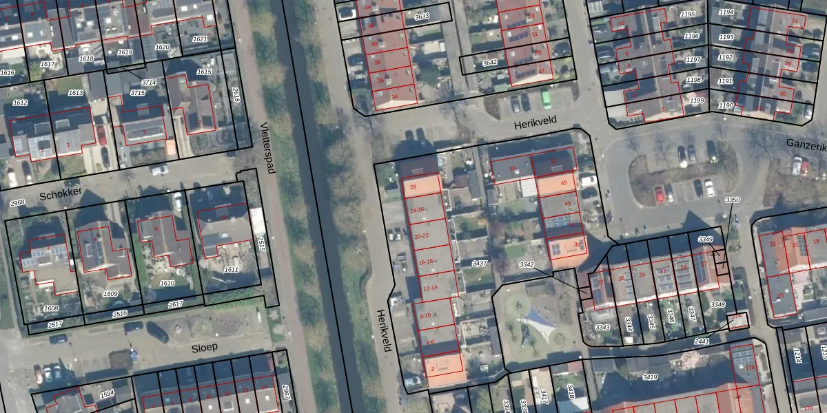 Het perceel waarop Herikveld 26 staat heeft een oppervlakte van 2371 m². Dit is een zeer groot perceel. De perceeloppervlakte wordt geregistreerd door het Kadaster. Gedetailleerde informatie over de maten van dit perceel kunt u vinden in het rapport Kadastrale kaart met maatvoering van Herikveld 26.