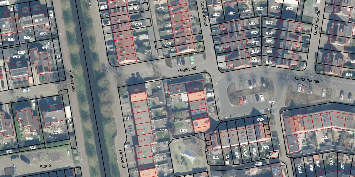 Het perceel waarop Herikveld 30 staat heeft een oppervlakte van 2371 m². Dit is een zeer groot perceel. De perceeloppervlakte wordt geregistreerd door het Kadaster. Gedetailleerde informatie over de maten van dit perceel kunt u vinden in het rapport Kadastrale kaart met maatvoering van Herikveld 30.