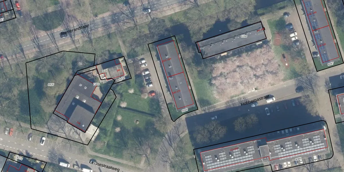 Hobbemastraat 162-B is gelegen op kadastraal perceel WDN01B8084. Deze kadastrale aanduiding is uniek en wordt gebruikt door het Kadaster om eigendomsrechten en andere zakelijke rechten vast te leggen. Het perceel maakt onderdeel uit van de kadastrale gemeente Woerden.