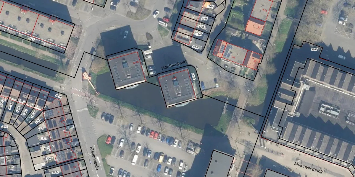 Het perceel waarop Hoefbladveld 11 staat heeft een oppervlakte van 820 m². Dit is een groot perceel. De perceeloppervlakte wordt geregistreerd door het Kadaster. Gedetailleerde informatie over de maten van dit perceel kunt u vinden in het rapport Kadastrale kaart met maatvoering van Hoefbladveld 11.