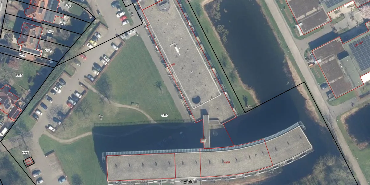 Het perceel waarop Hofplein 19 staat heeft een oppervlakte van 1,5 ha. Dit is een zeer groot perceel. De perceeloppervlakte wordt geregistreerd door het Kadaster. Gedetailleerde informatie over de maten van dit perceel kunt u vinden in het rapport Kadastrale kaart met maatvoering van Hofplein 19.