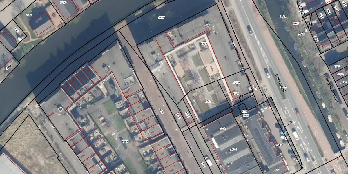 Het adres is gelegen op perceel 8758 in de sectie B en de kadastrale gemeente Woerden. De kadastrale aanduiding is aldus WDN01-B-8758. Het perceel is met 1914 m² relatief groot. Het gemiddelde ligt in de kadastrale gemeente Woerden op 1326,34 m². Het grootste perceel in de kadastrale gemeente is 55,0 ha. Het kleinste perceel heeft een oppervlakte van 0 m². Op het perceel liggen in totaal 48 adressen. De huidige grenzen van het perceel zijn digitaal in de Basisregistratie Kadaster (BRK) geregistreerd op 21-02-2008.