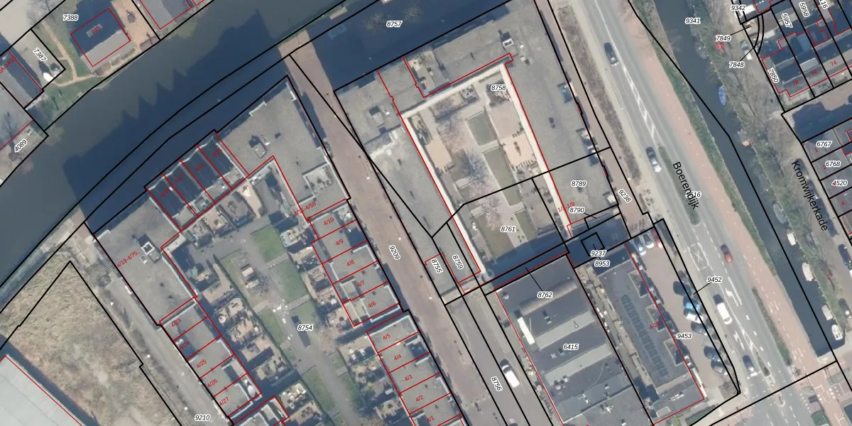 Het adres is gelegen op perceel 8758 in de sectie B en de kadastrale gemeente Woerden. De kadastrale aanduiding is aldus WDN01-B-8758. Het perceel is met 1914 m² relatief groot. Het gemiddelde ligt in de kadastrale gemeente Woerden op 1326,16 m². Het grootste perceel in de kadastrale gemeente is 55,0 ha. Het kleinste perceel heeft een oppervlakte van 0 m². Op het perceel zijn 48 adressen aanwezig. In de Basisregistratie Kadaster (BRK) werden de grenzen van het perceel geregistreerd op 21-02-2008.