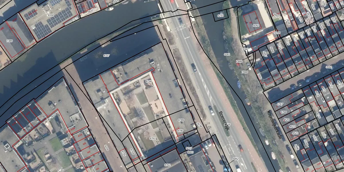 Het adres is gelegen op perceel 8758 in de sectie B en de kadastrale gemeente Woerden. De kadastrale aanduiding is aldus WDN01-B-8758. Het perceel is met 1914 m² relatief groot. Het gemiddelde ligt in de kadastrale gemeente Woerden op 1326,34 m². Het grootste perceel in de kadastrale gemeente is 55,0 ha. Het kleinste perceel heeft een oppervlakte van 0 m². Op het perceel liggen in totaal 48 adressen. De huidige grenzen van het perceel zijn digitaal in de Basisregistratie Kadaster (BRK) geregistreerd op 21-02-2008.