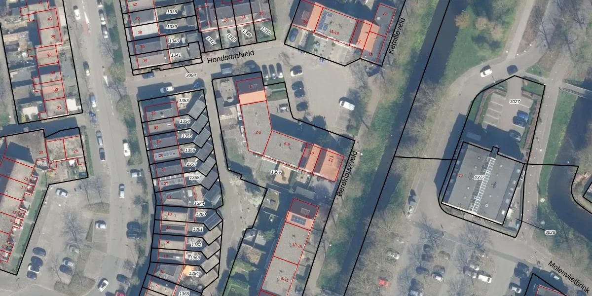 Het perceel waarop het adres ligt is WDN01-D-1369. De afkorting 'WDN01' staat voor kadastrale gemeente Woerden. Het perceel is met 2985 m² relatief groot. Het gemiddelde ligt in de kadastrale gemeente Woerden op 1325,81 m². Het kleinste perceel in de kadastrale gemeente is 0 m² groot. De grootste perceeloppervlakte is 55,0 ha. Er zijn 27 adressen aanwezig op het perceel. In de Basisregistratie Kadaster (BRK) werden de grenzen van het perceel geregistreerd op 21-10-2003.