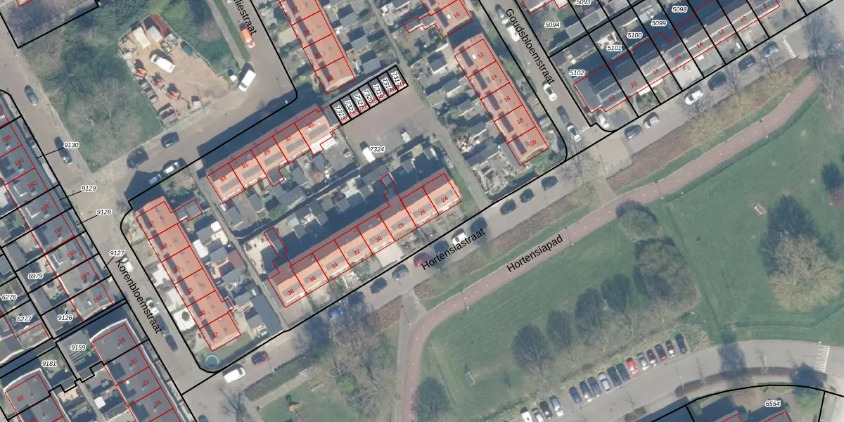 Hortensiastraat 26 is gelegen op kadastraal perceel WDN01B7324. Deze kadastrale aanduiding is uniek en wordt gebruikt door het Kadaster om eigendomsrechten en andere zakelijke rechten vast te leggen. Het perceel maakt onderdeel uit van de kadastrale gemeente Woerden.