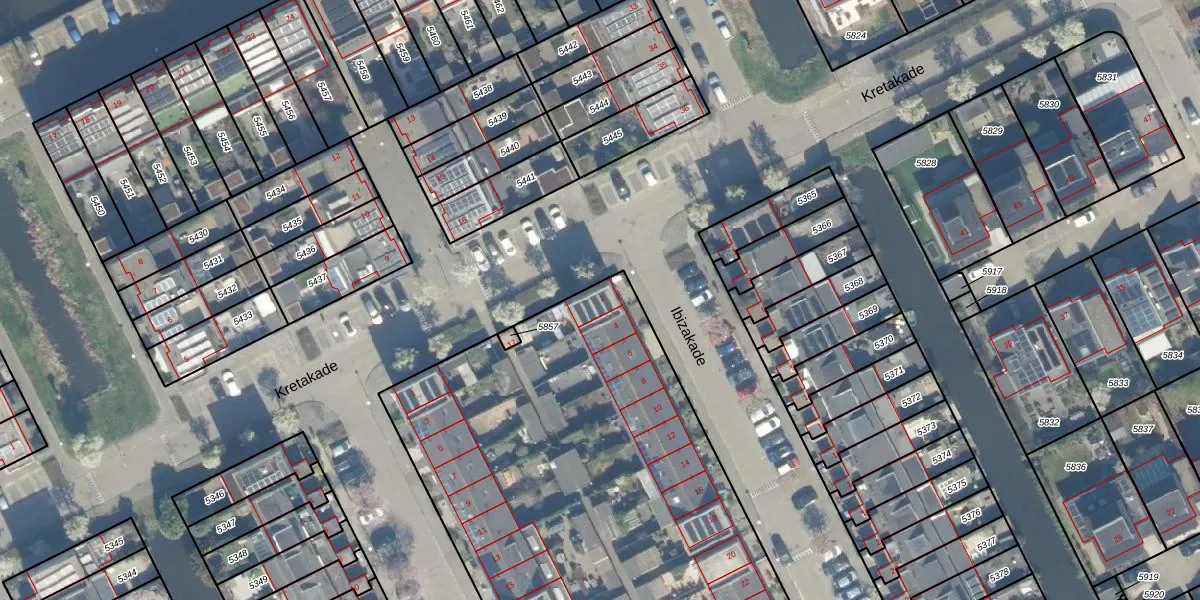 Het perceel waarop Ibizakade 2 staat heeft een oppervlakte van 4546 m². Dit is een zeer groot perceel. De perceeloppervlakte wordt geregistreerd door het Kadaster. Gedetailleerde informatie over de maten van dit perceel kunt u vinden in het rapport Kadastrale kaart met maatvoering van Ibizakade 2.