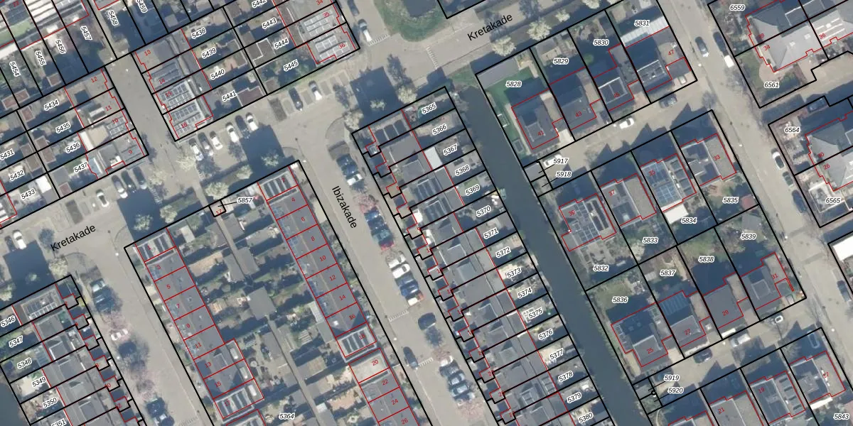 Het perceel waarop Ibizakade 9 staat heeft een oppervlakte van 131 m². Dit is een middelgroot perceel. De perceeloppervlakte wordt geregistreerd door het Kadaster. Gedetailleerde informatie over de maten van dit perceel kunt u vinden in het rapport Kadastrale kaart met maatvoering van Ibizakade 9.