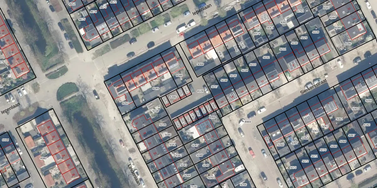 Gebruik de zoekbalk of klik op een perceel voor informatie over de adressen binnen dit perceel.
