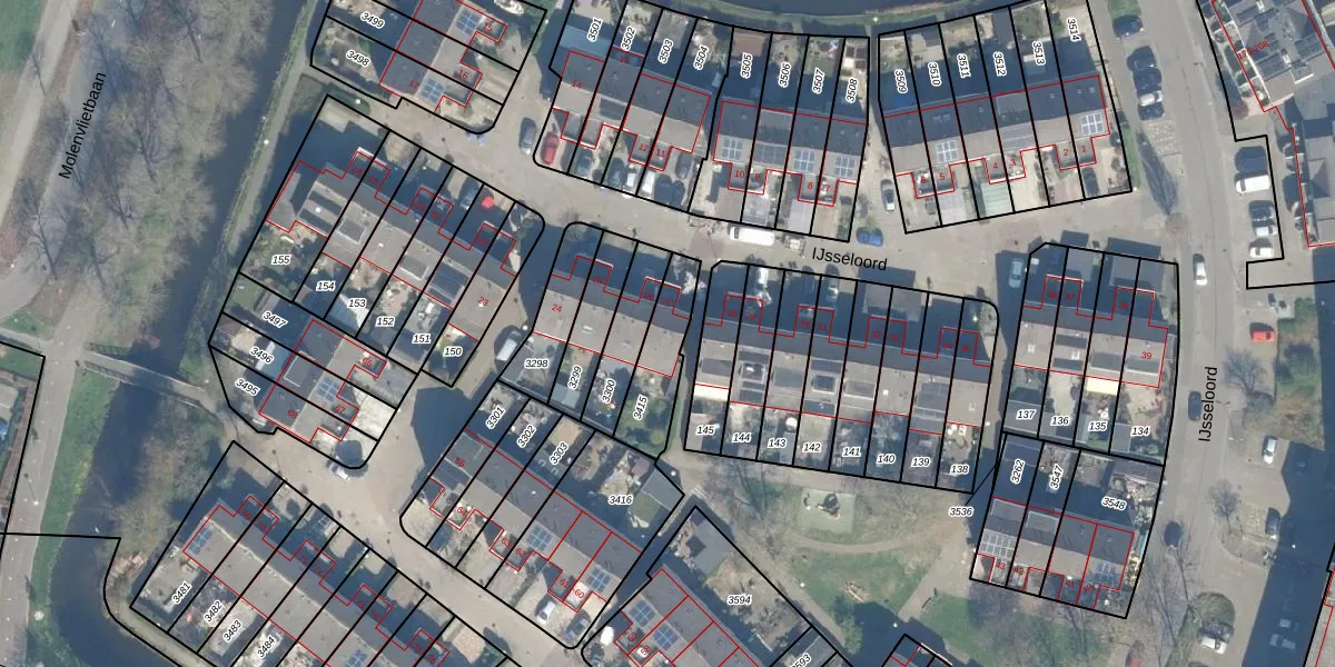Gebruik de zoekbalk of klik op een perceel voor informatie over de adressen binnen dit perceel.