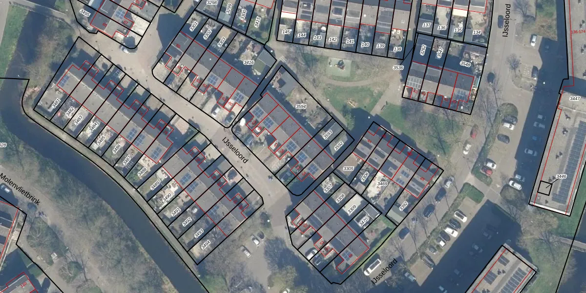 Het perceel waarop IJsseloord 56 staat heeft een oppervlakte van 637 m². Dit is een groot perceel. De perceeloppervlakte wordt geregistreerd door het Kadaster. Gedetailleerde informatie over de maten van dit perceel kunt u vinden in het rapport Kadastrale kaart met maatvoering van IJsseloord 56.